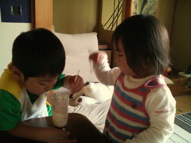 2人で一つのパフェをつっついていました。