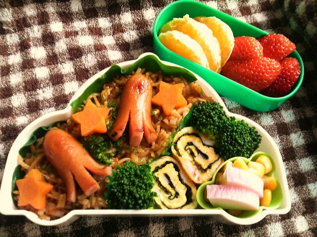 青のりをふりかけ、タコさんウインナーを乗せたら出来上がり☆