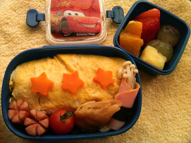 卵にくるんで上に星型の人参を乗せたら出来上がり☆