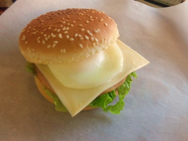 レタス・ハム・スライスチーズに目玉焼きをサンド!