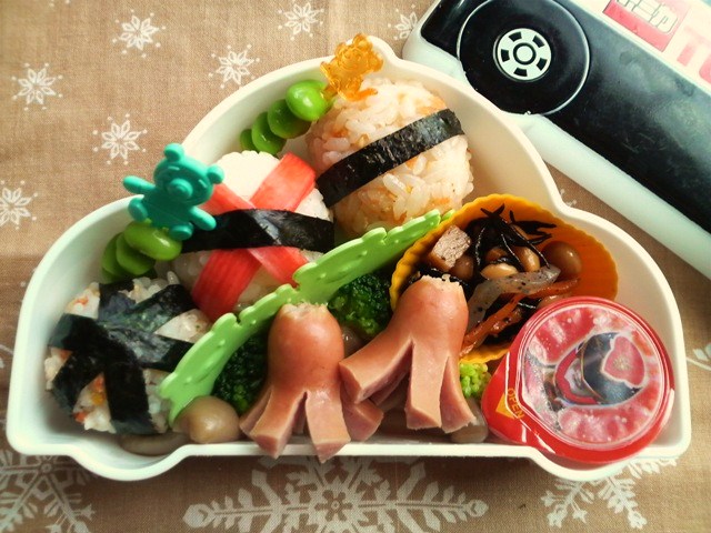 チーズのしまじろうを乗せた機関車ののり巻きだよ☆