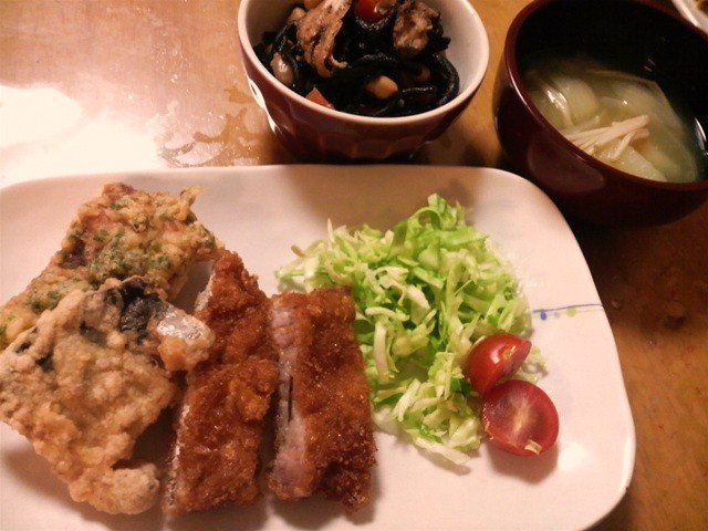 秋刀魚は青のりとゴマの2種類の衣で揚げました。