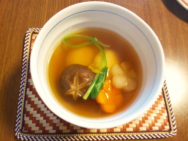 結んだ三つ葉と柚子の皮をチョンと乗せる。