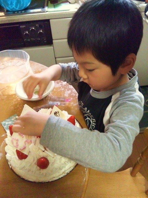 朝から、アズとりゅうとりほこでケーキ作り。