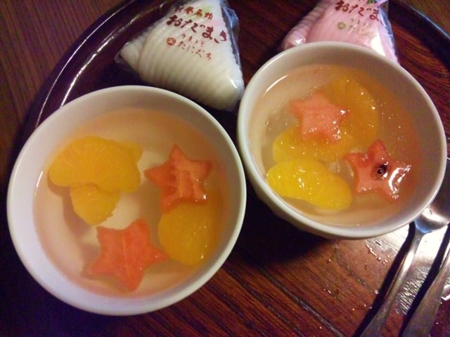 スイカを星型にカットして、ミカンの缶詰と一緒に固めただけ。