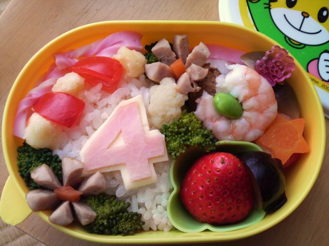 ハムとチーズで『4』の文字を作ってデコレーション。