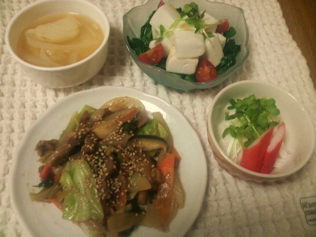買い物に行けず、冷蔵庫の残り物で作りました。